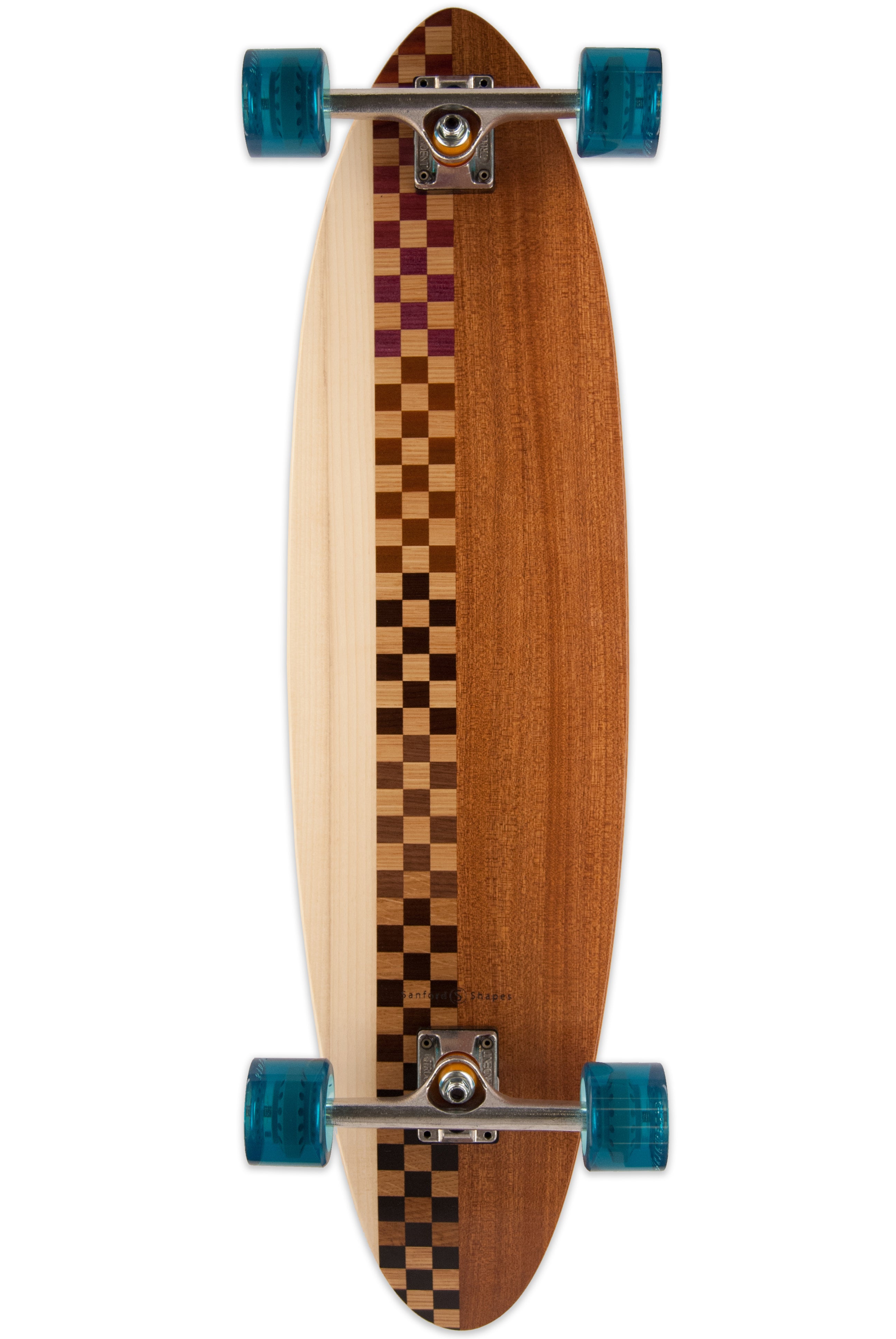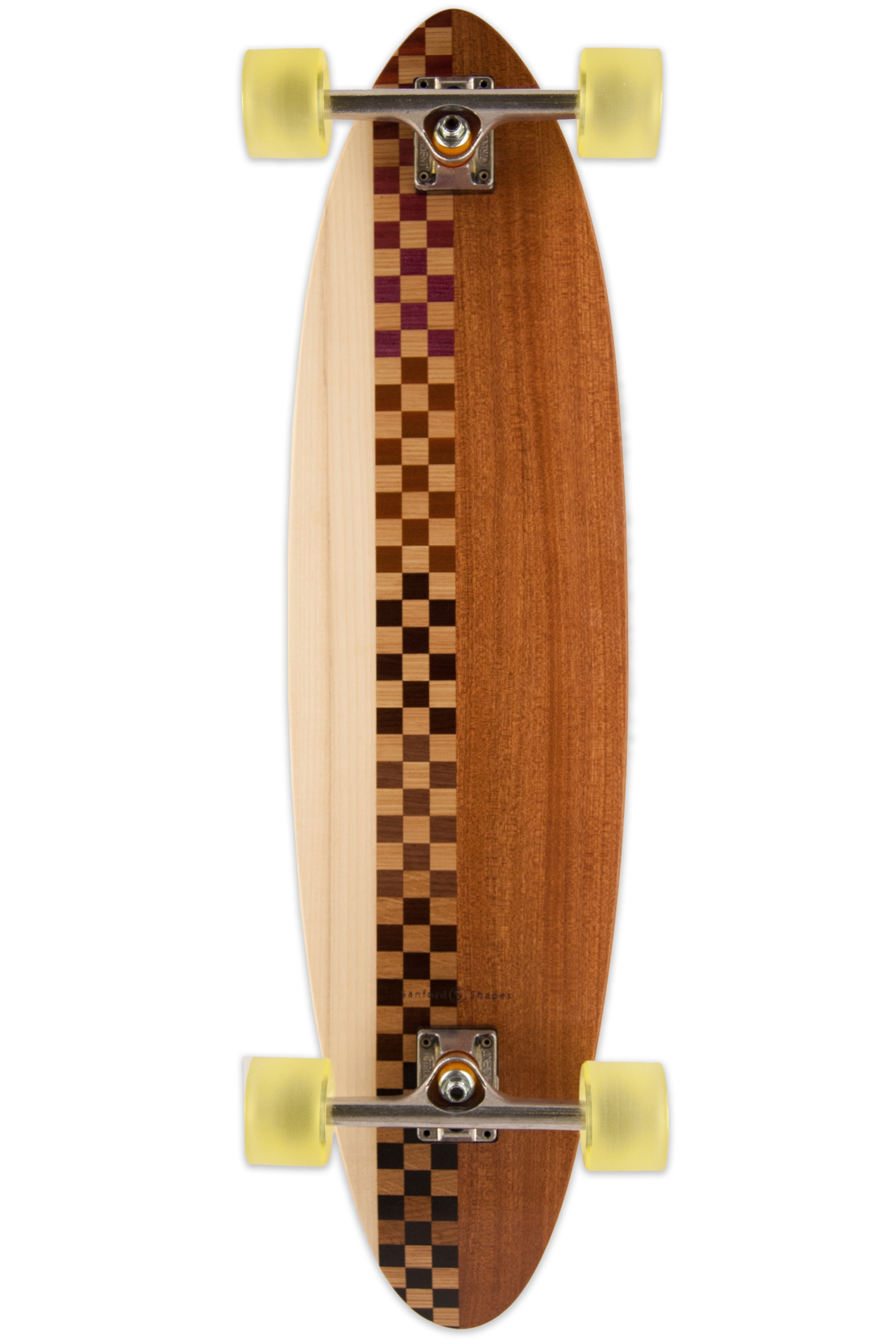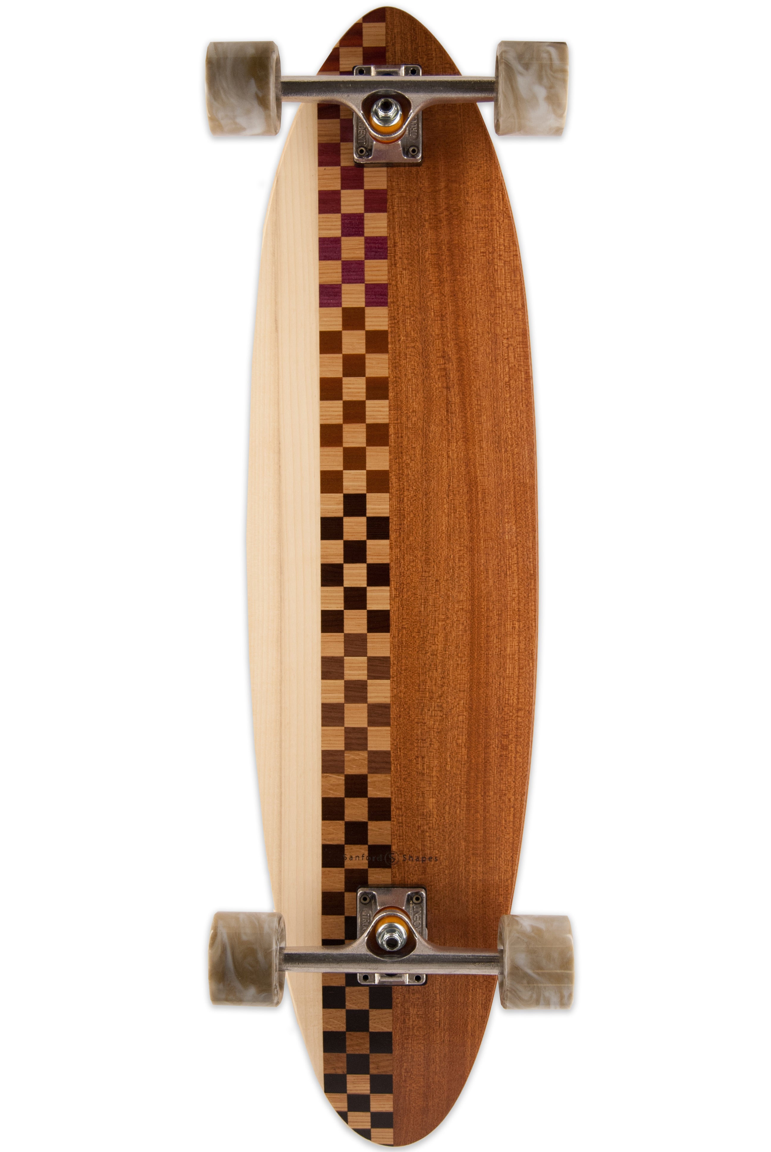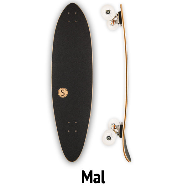 The Mal essentially takes all of the features of the Mako, and enhances it. This board is heavy duty. It is stable, comfortable, and can handle just about anything. The camber in the deck profile provides some flex, perfect for those of you walking the nose. Great for long distance rides and smooth drawn out carves. Our Checkmate design features a subtle, offset checker fade coupled with premium Mahogany and Maple. Whether you are a beginner or a grandmaster, the shape and design of this complete longboard skateboard ensure fun for everyone.