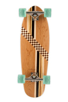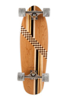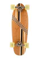 The Manatee is our most versatile and popular cruiser. Its wide profile and round tail provide the perfect balance of stability and maneuverability. Its broad stance provides optimum comfort, making this board fun and easy to ride. This design features an old-school look with Poplar & Walnut checkers, Wenge/Yellowheart/Poplar stripes, balanced with warm Cherry wood all around.