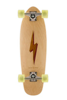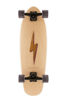The Snapper is slightly bigger than the Tuna, but still has all of its unique small and lightweight components while expressing its own personality. Its slightly bigger size and round tail allow the Snapper to maintain its quick and snappy mobility while providing a slight edge on stability and comfort. The tapered, round-tail shape and perfectly balanced geometry make the Snapper a solid, all-around complete cruiser skateboard. This design features a Koa Bolt inlay with a Purpleheart drop shadow, framed by our Maple veneer. Acacia Koa is a wood species endemic to the Hawaiian Islands. Its name in the Hawaiian language, Koa, also means brave, bold, fearless, or warrior. Get electric with our bolt design!