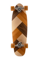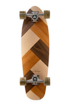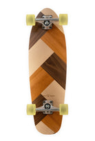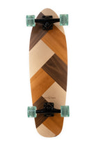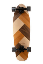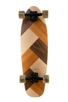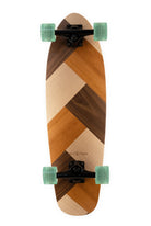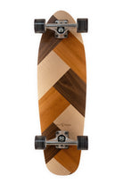 The Snapper is slightly bigger than the Tuna, but still has all of its unique small and lightweight components while expressing its own personality. Its slightly bigger size and round tail allow it to maintain its quick and snappy mobility while providing a slight edge on stability and comfort. The tapered, round-tail shape and perfectly balanced geometry make the Snapper a solid, all-around complete cruiser skateboard. This design features one of our original designs, Dreamweaver. A cross weave pattern with a combination of beautiful wood species: Walnut, Maple, and the rich color of Goncalo.