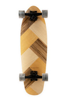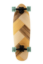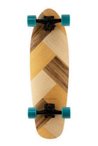 The Snapper is slightly bigger than the Tuna, but still has all of its unique small and lightweight components while expressing its own personality. Its slightly bigger size and round tail allow it to maintain its quick and snappy mobility while providing a slight edge on stability and comfort. The tapered, round-tail shape and perfectly balanced geometry make the Snapper a solid, all-around complete cruiser skateboard. This design features one of our original designs, Dreamweaver. A cross weave pattern with a combination of beautiful wood species: Maple, the textured grain of Black Limba, and a splash of color with Yellowheart.