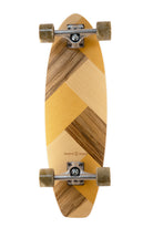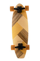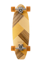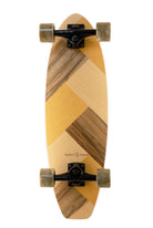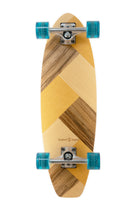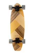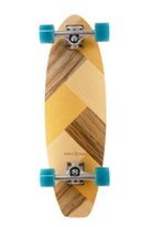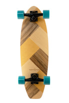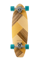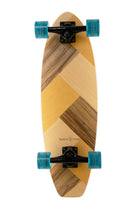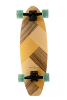 A clean, compact mini-cruiser. You can strap this complete skateboard to your backpack and stash it in a locker. The Tuna being our smallest board, is the most lightweight, compact, and easy to turn cruiser. Its small size and squared off tail provides quick and snappy mobility. Because this board is highly maneuverable, it is optimal for kids or anyone with a little bit of experience. This design features one of our original designs, Dreamweaver. A cross weave pattern with a combination of beautiful wood species: Poplar, textured grain of Black Limba, and a soft splash of Yellowheart.