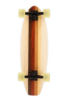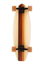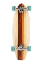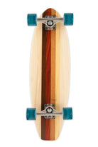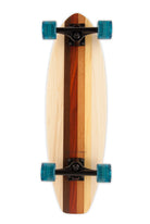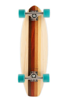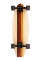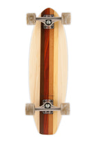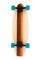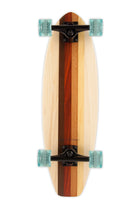 A clean, compact mini-cruiser. You can strap this complete skateboard to your backpack and stash it in a locker. The Tuna being our smallest board, is the most lightweight, compact, and easy to turn cruiser. Its small size and squared off tail provides quick and snappy mobility. Because this board is highly maneuverable, it is optimal for kids or anyone with a little bit of experience. The Lineup design features Walnut, Padauk, Goncalo, and Yellowheart stripes framed by Poplar. Get some carves in with this classic and timeless design!